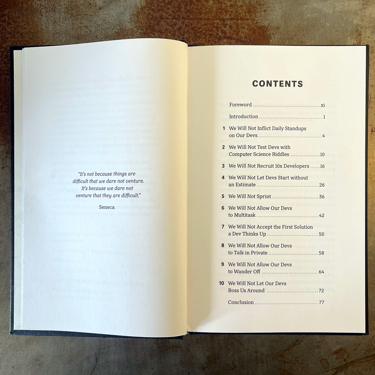 “David Guttman has boiled down 20+ years of software team experience into ten delightfully short chapters that are clear-eyed, unapologetic, and at times, darkly hilarious. A no-holds barred takedown of some of the biggest 'common sense' myths about how to build and manage productive software teams. David pulls no punches on topics like daily stand-ups, developer estimates, 10x developers, and more. A must read for founders who don't want to feel like they're at the mercy of their dev teams.”